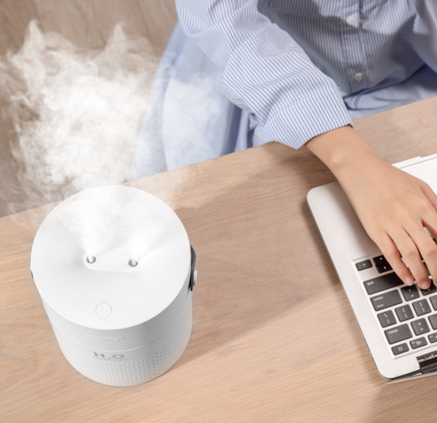 创意新品双喷加湿器 1.1L大容量置锂电池usb充电款卧室家用加湿机