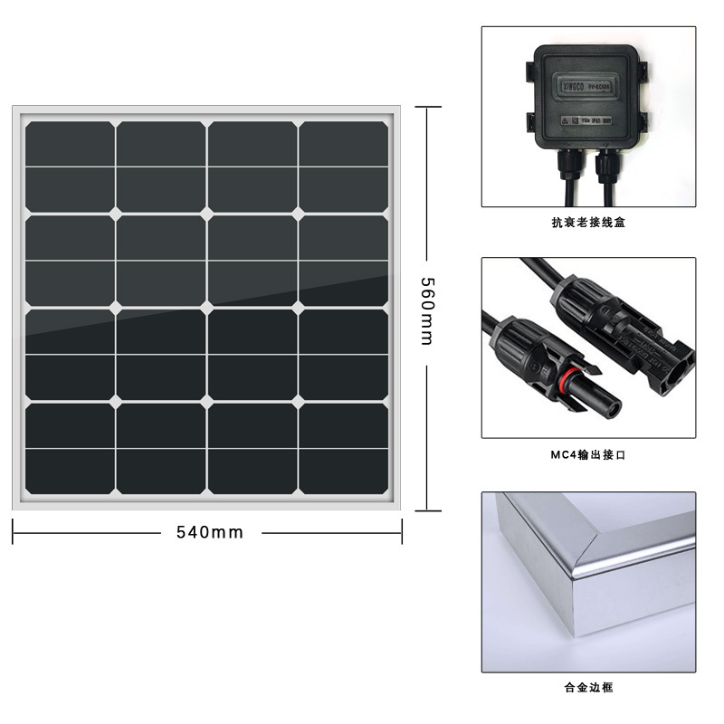 50W太阳能板 PET层压太阳能电池板 户外屋顶发电 玻璃板