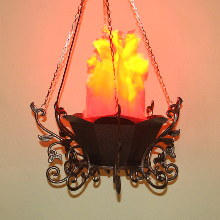 吊式电子火盆灯铁盆灯酒吧酒店居室装饰宫廷式仿真复古火焰灯批发