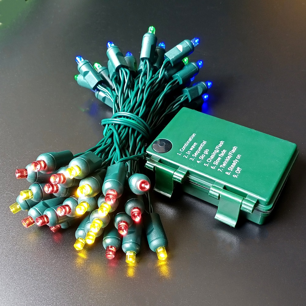 八功能带定时电池盒灯串美规啤注式户外防水花环圣诞树装饰灯串