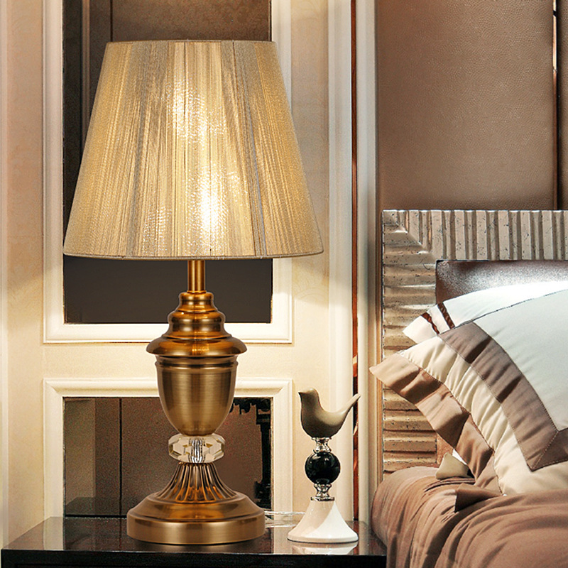 现代简约台灯卧室床头灯 五金水晶客厅台灯落地