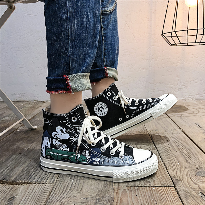 2020新款男春季米老鼠潮鞋休闲韩版潮流网红涂鸦高帮帆布鞋C1117