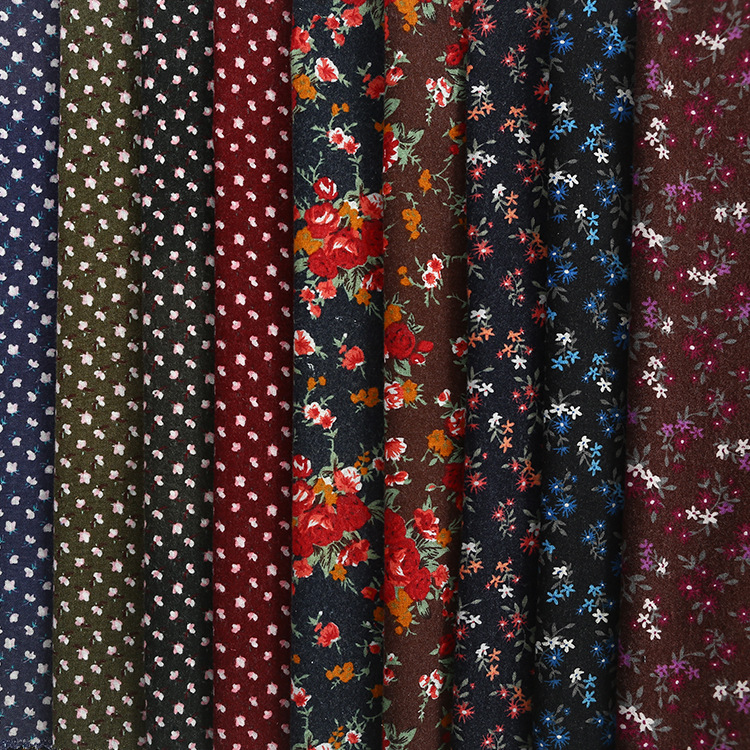 厂家新款秋冬磨毛女装服装面料 棉类印花衬衫布料 多色可订制