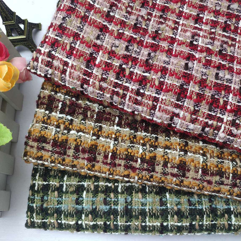 新款小香风七彩编织呢毛呢面料 大牌外套马甲女装服装面料 现货