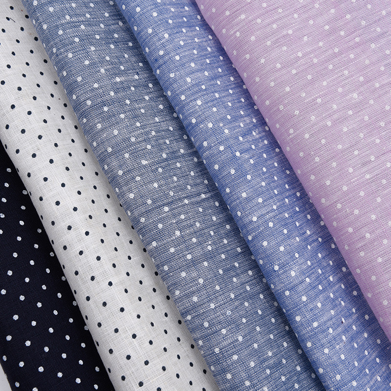 100%亚麻色织印花面料 女装服装面料棉麻印花面料 色织印花棉布