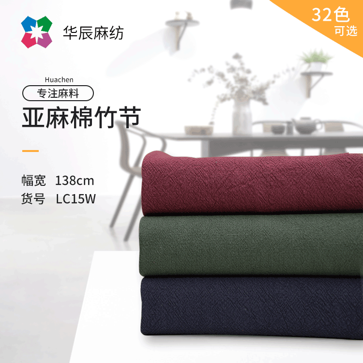 15s砂洗亚麻棉竹节 压皱棉麻布 休闲朴素风格文艺女装服装面料