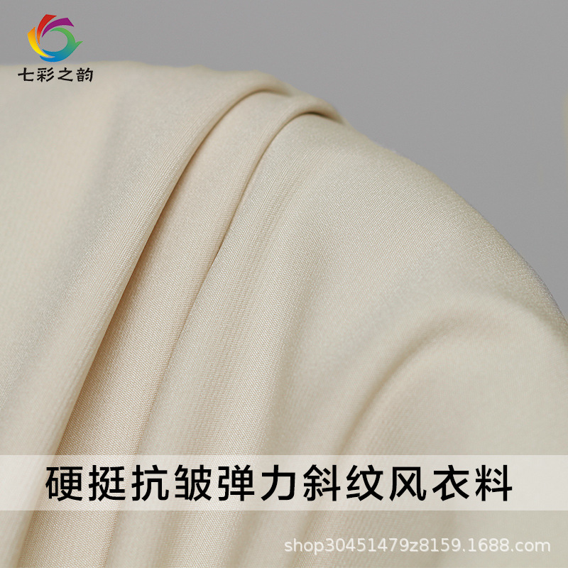 七彩之韵加厚不易皱弹力斜纹风衣布料浅卡其纯色女装服装面料