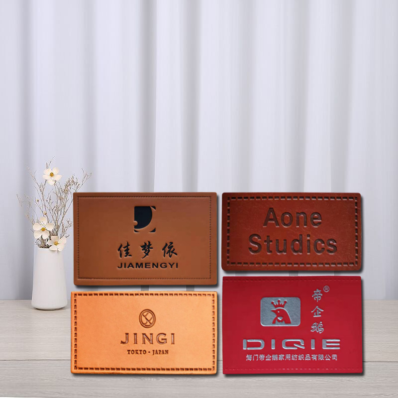 供应服装辅料商标超纤仿皮PU压印变色皮革吊牌牛仔裤皮标皮牌定做