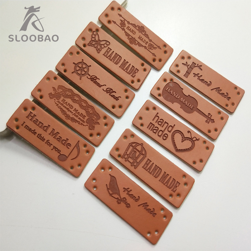 现货卡通图案hand madeDIY手工韩版变色皮标牌PU皮革压花标签定制