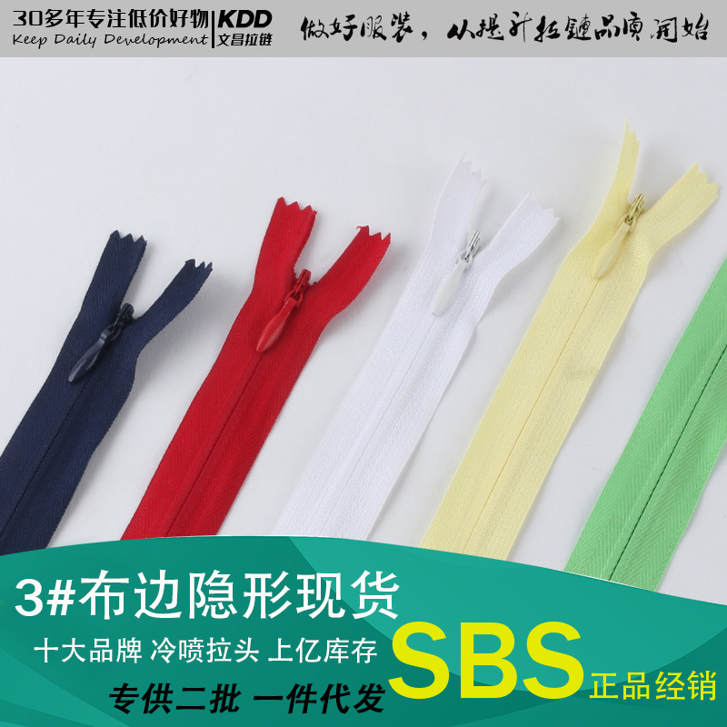 3号布边尼龙隐形拉链 SBS水滴头尼龙隐形拉链 西裤链服装裙子拉链