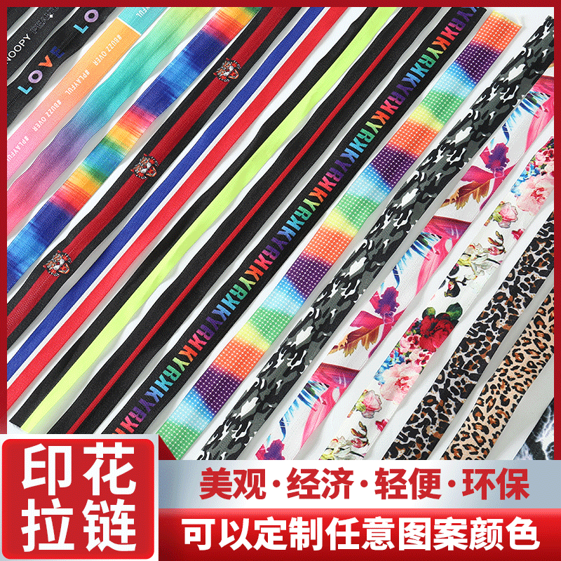 现货批发5号印花拉链箱包鞋服饰用双闭尾环保欧标尼龙隐形拉链