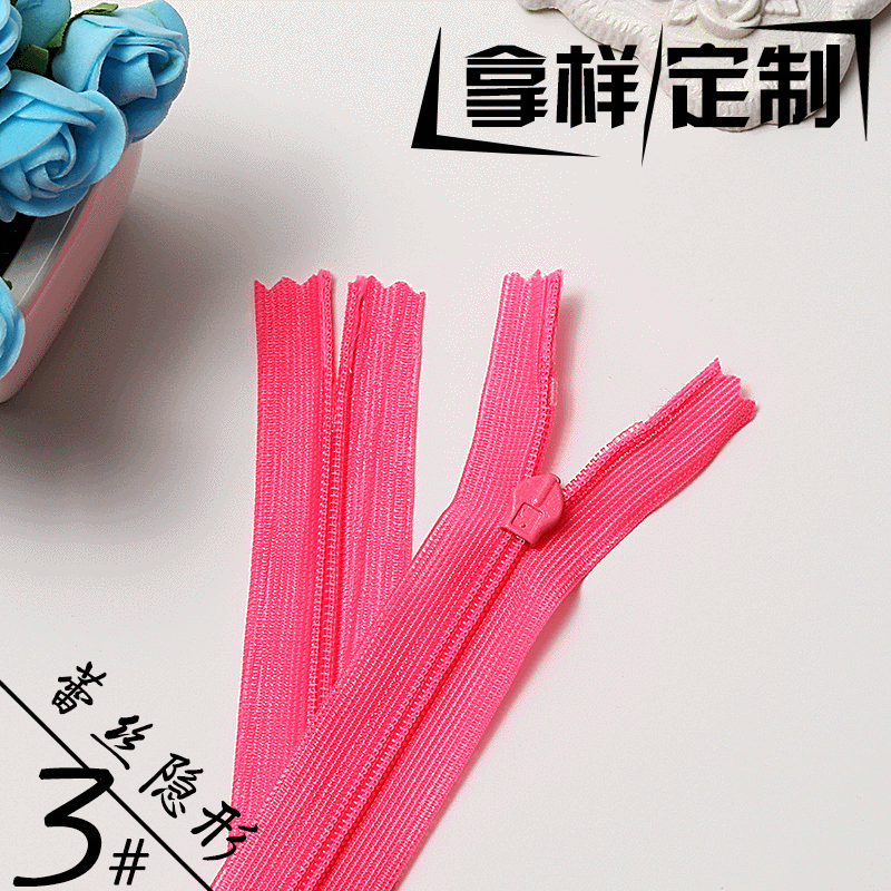 工厂批发透明蕾丝彩色现货裙子抱枕床单被套拉链 3号尼龙隐形拉链