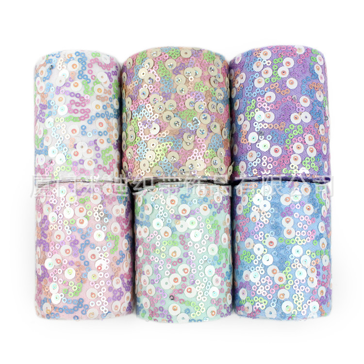 批发75MM宽双色翻片珠片面料双面亮片绣面料翻转珠片绣花布贴刺绣