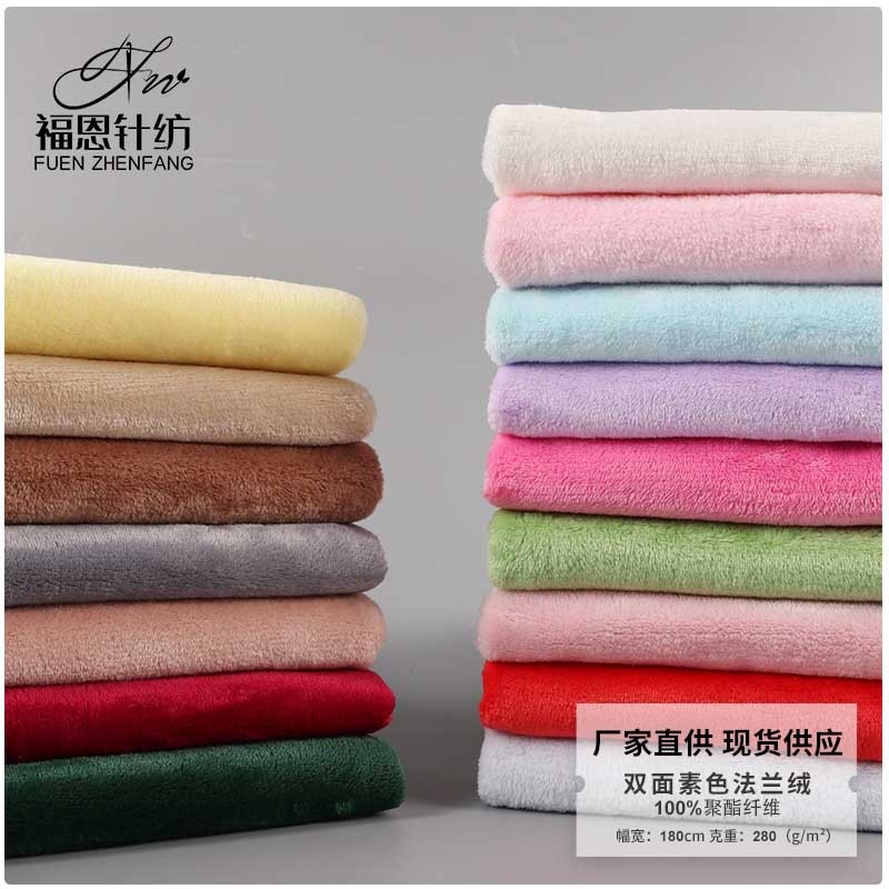 现货双面涤纶法兰绒 针织素色经编绒布 毛毯童装浴袍睡衣面料