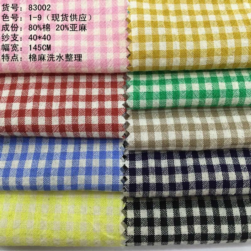 棉麻色织洗水格子衬衫面料 麻棉透气柔软格子布料厂家批发83002