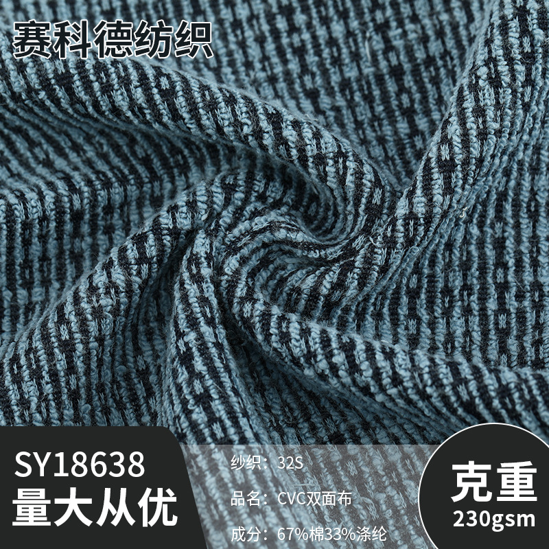 批发32S涤棉蓝黑色CVC双面汗布T恤睡衣开衫校服睡衣面料双面汗布