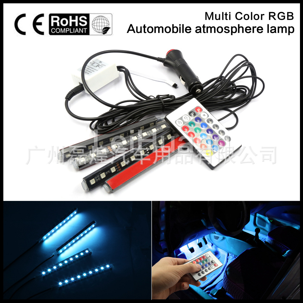 汽车9LED七彩气氛灯,1拖4遥控,车内脚底灯氛围灯