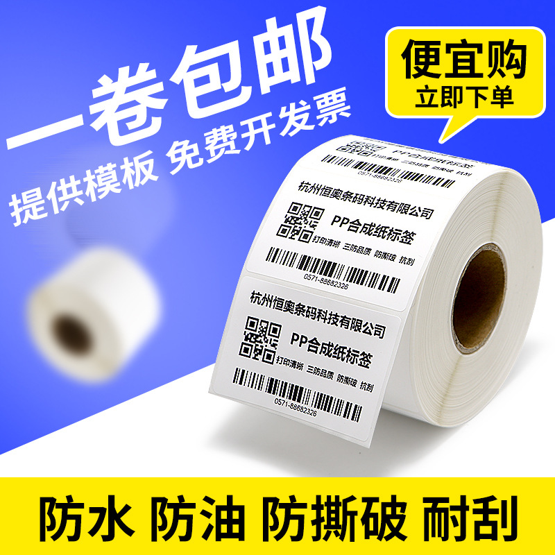 PP合成纸不干胶标签80*化工防水防油二维码条码热转印打印订制