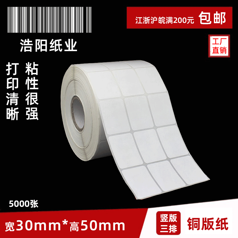 铜版纸不干胶30x50数字贴包装贴纸不干胶标签条码打印纸一件代发