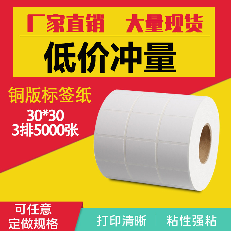 铜版纸不干胶标签30*30*5000张标签纸条码纸铜版不干胶标签打印
