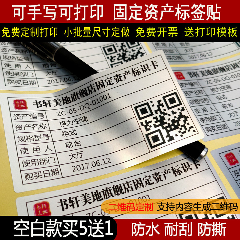 固定资产标签贴a4不干胶标签纸打印纸哑银防水不粘胶固定资产卡片