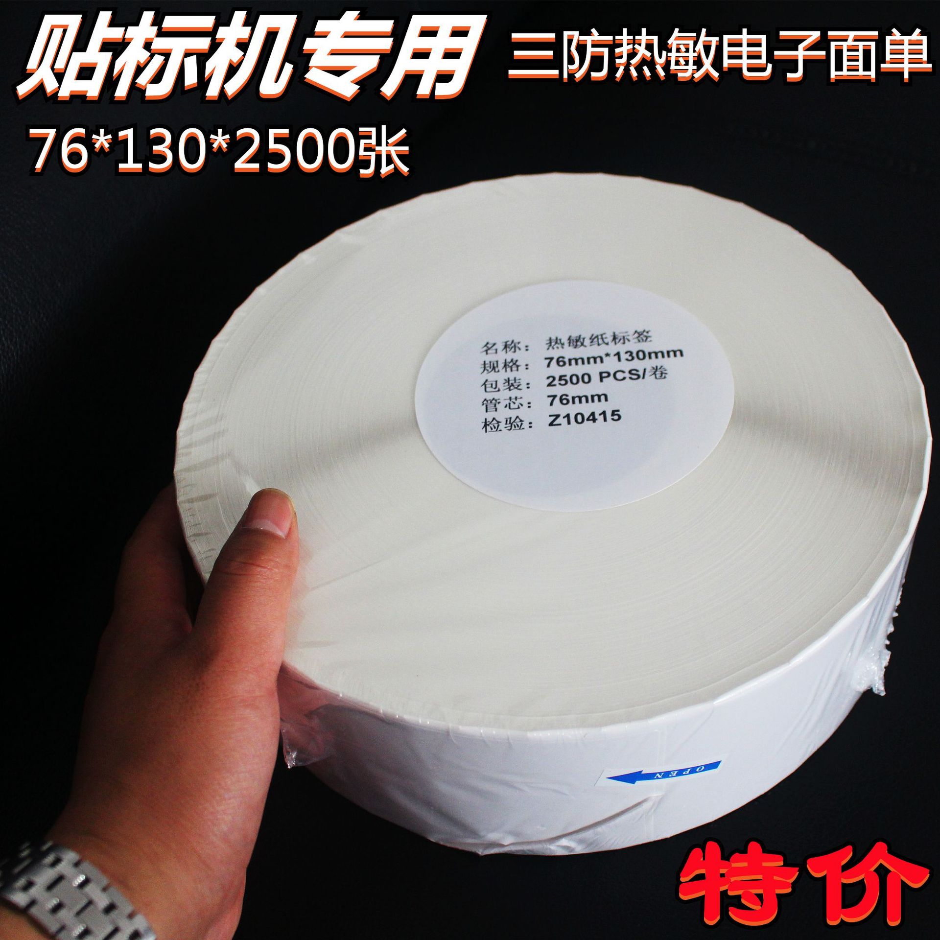 电商自动贴标机专用三防热敏纸快递面单76*130*2500张不干胶标签