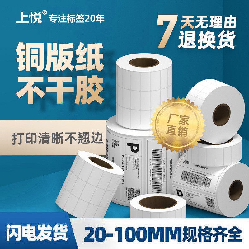 铜版纸不干胶标签快递条形码碳带打印纸食品包装不干胶标签纸