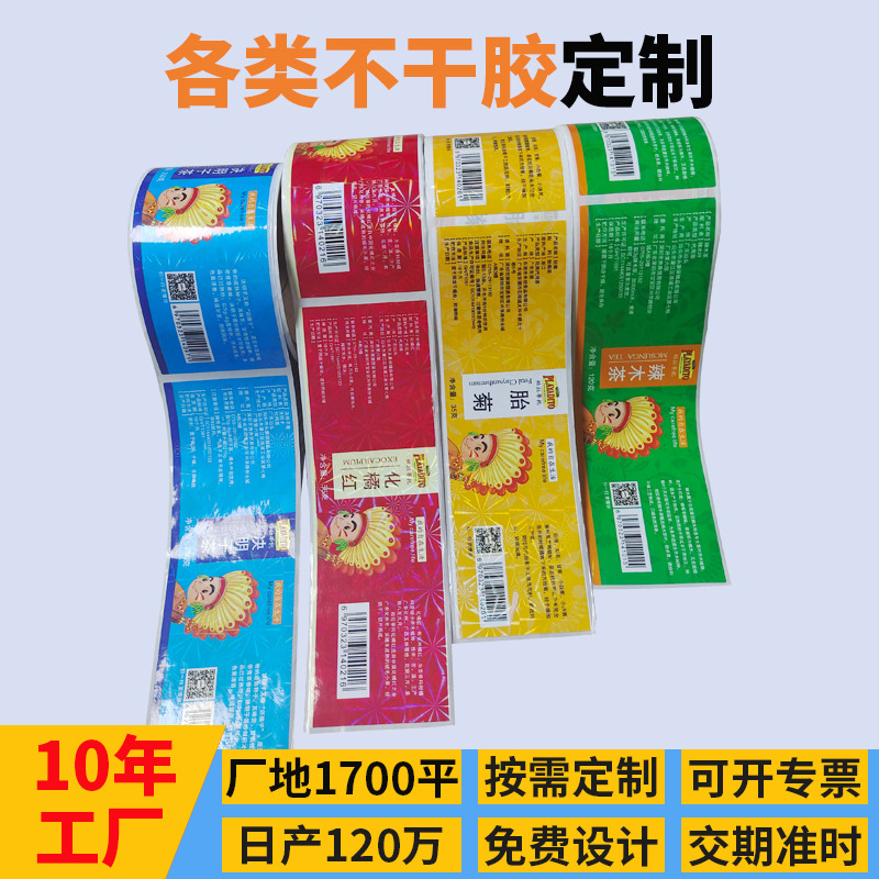 卷筒食品广告贴纸定制 镭射雪花膜不干胶标签 个性反光彩色印刷