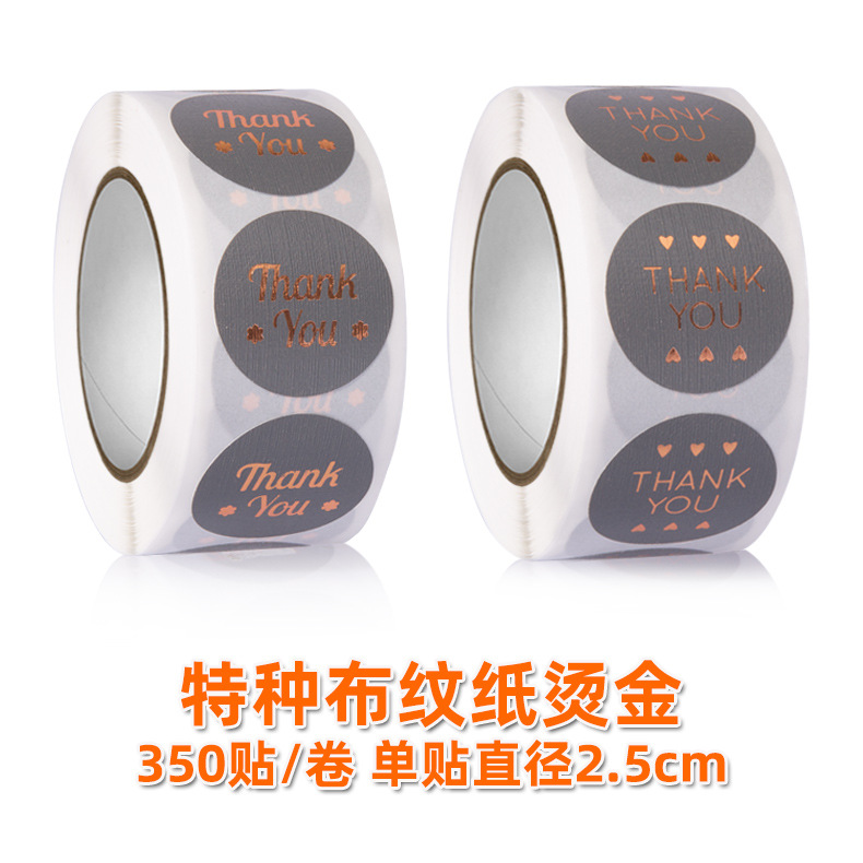 特种布纹纸Thank you感谢您烫金不干胶标签贴纸装饰封口贴卷装