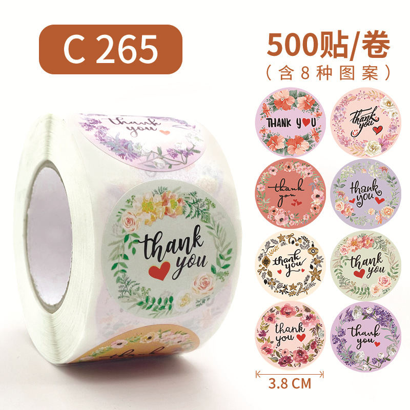 亚马逊圆形卷装花卉感谢贴纸婚礼装饰不干胶标签节日手工封口贴