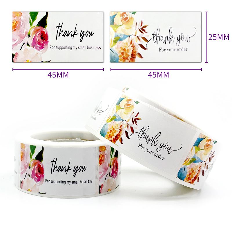 thankyou感谢不干胶标签贴花卉礼物封口贴纸节日包装装饰文具贴纸