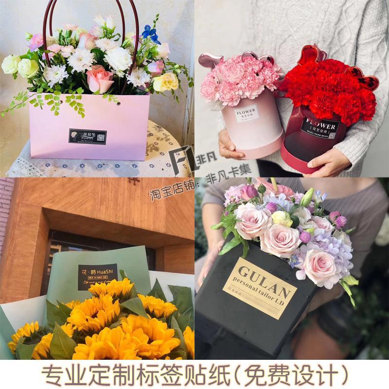花店花束烘焙鲜花不干胶标签二维码贴纸logo店标封口贴设计