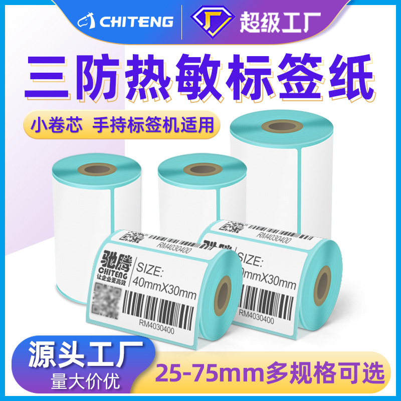 驰腾三防热敏纸 小卷芯不干胶标签手持便携打印机专用条码贴纸
