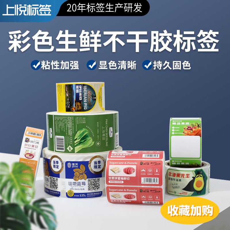 彩色生鲜不干胶标签烫金磨砂贴纸铜版热敏纸镭射不干胶标贴定制