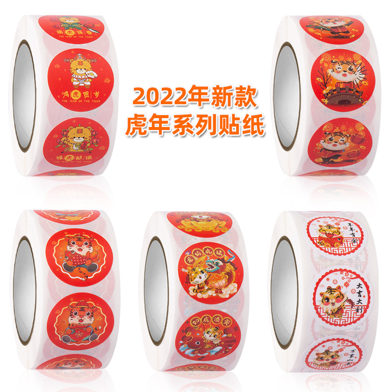 2022年新款虎年系列不干胶标签卷装贴纸红包春联装饰创意封口贴