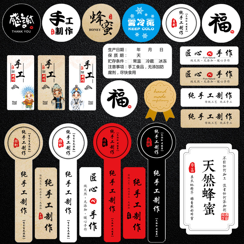 纯制作贴纸牛皮纸不干胶标签食品包装封口贴生产日期