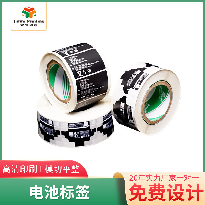 电池标签 印刷铝膜卷筒不干胶标签 合成PET贴纸电池不干胶标签