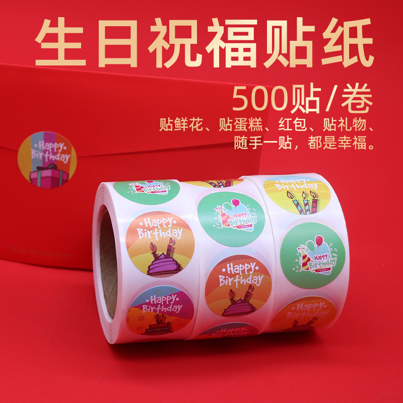 生日快乐贴纸礼物贴蛋糕贴鲜花贴红包封口贴不干胶标签过烘焙贴纸