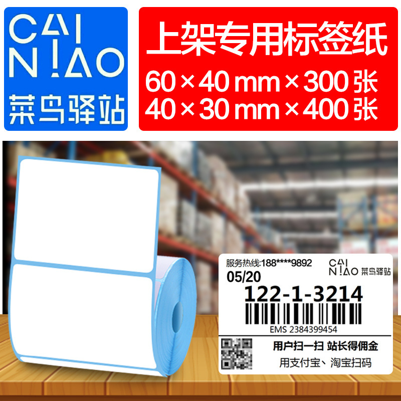 菜鸟驿站入库标签纸三防热敏不干胶标签纸60*40*30菜鸟驿站上架条