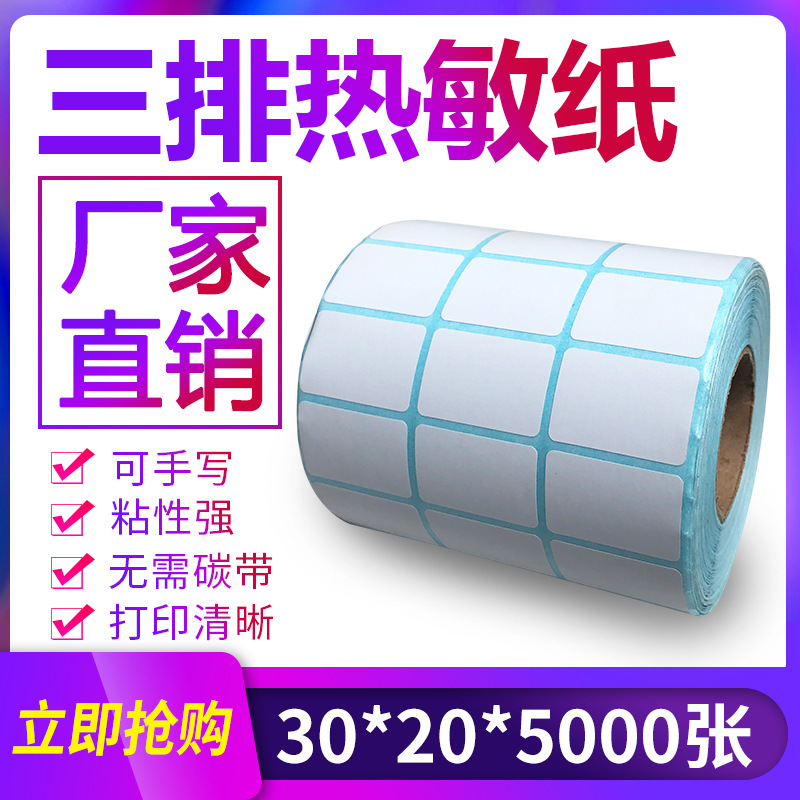 三防热敏纸不干胶30*20*5000三排标签纸二维码条形码打印贴纸3*2