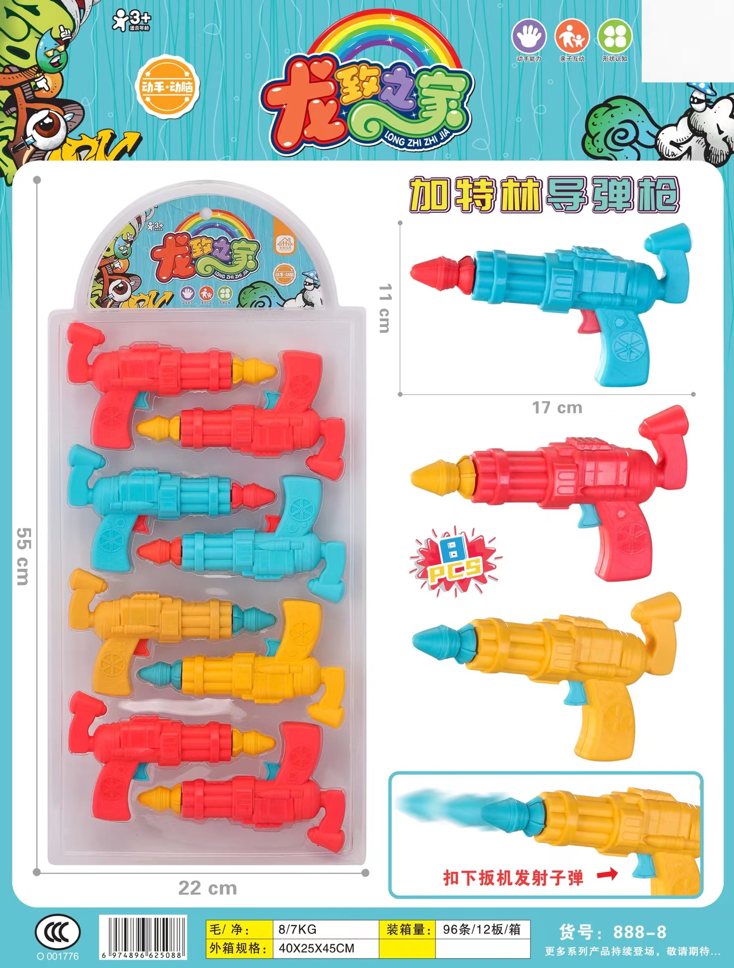 学校周边地摊热销儿童塑料板装创新益智加特林导弹枪玩具