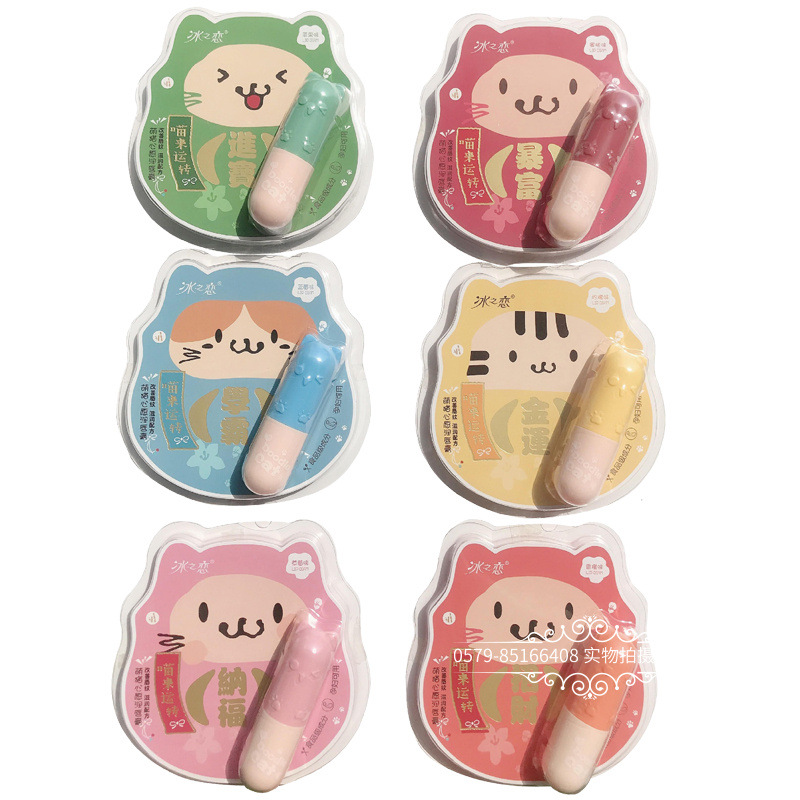 冰之恋萌猫心愿润唇膏卡通儿童润唇膏无色水果味口红批发85058