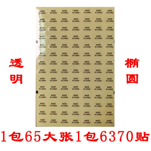 中国制造Made in China英文产地透明不干胶标签贴1包65张