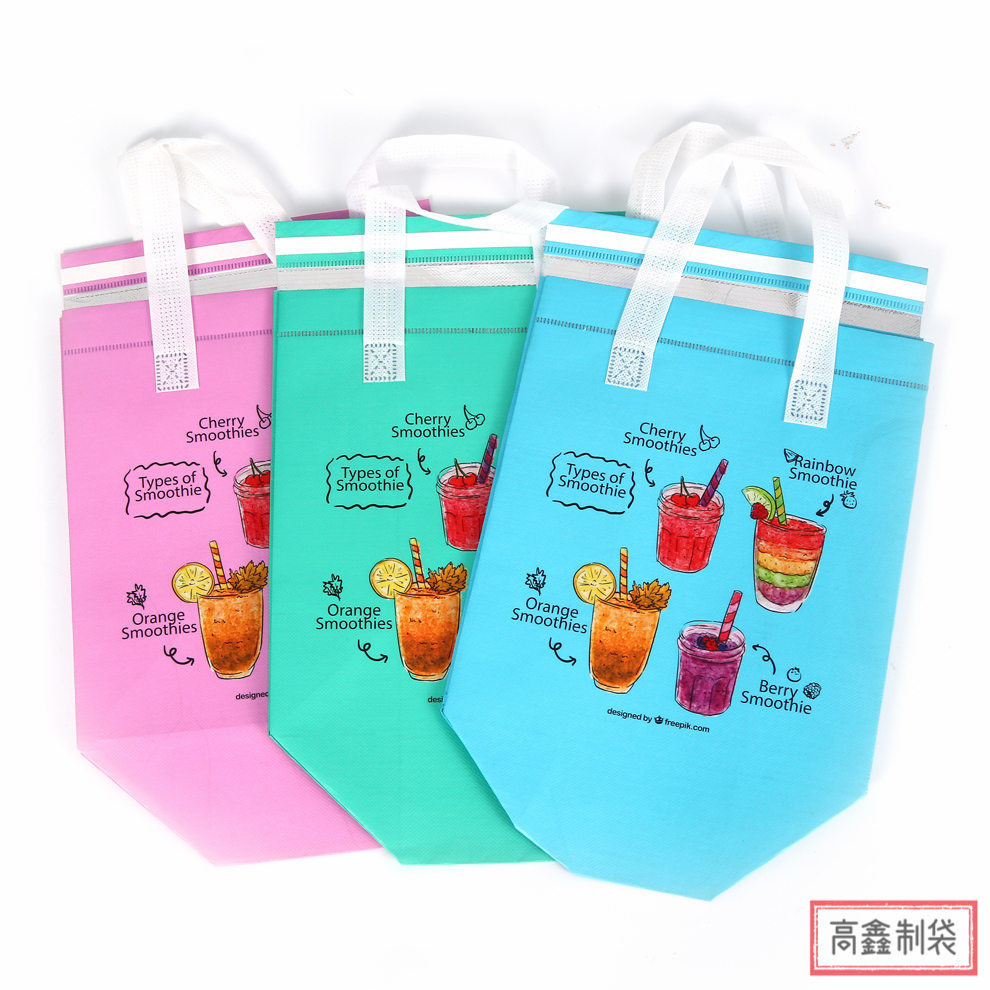 创新研发个性多彩配色外卖果汁奶茶饮品包装袋 无纺布覆膜外卖袋
