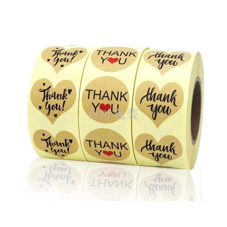 批发定制 圆行 心形 牛皮纸不干胶贴纸 THANK YOU 标签