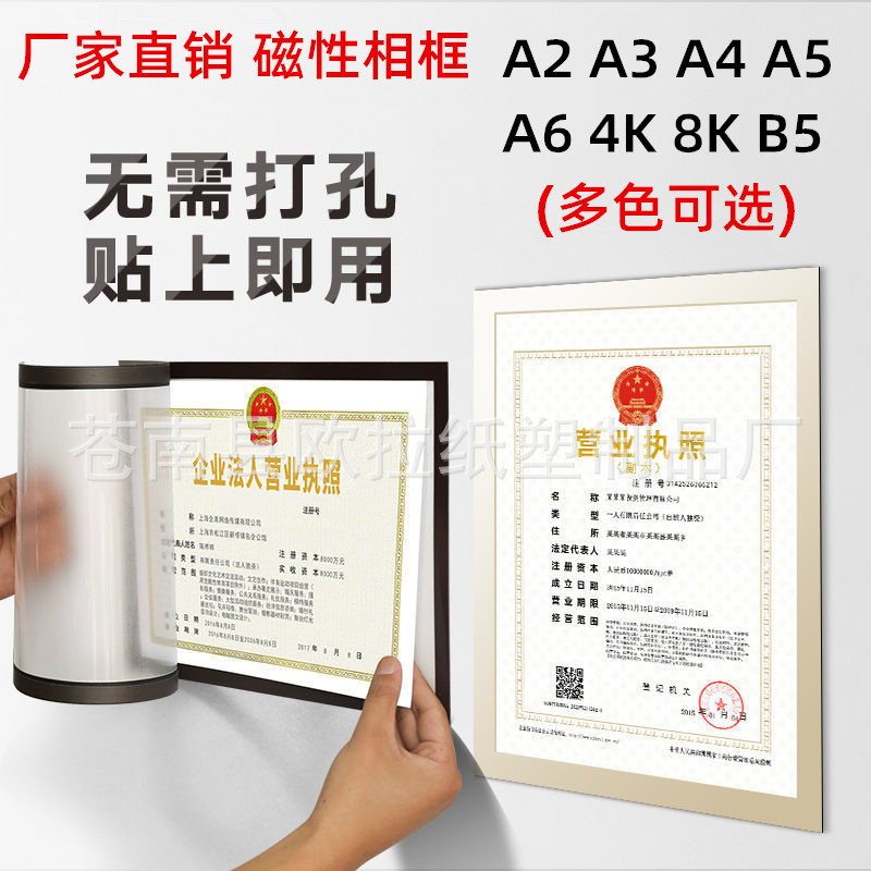 磁吸相框A3A4营业执照 8开B5奖状框广告海报磁性展示贴软画框粘墙