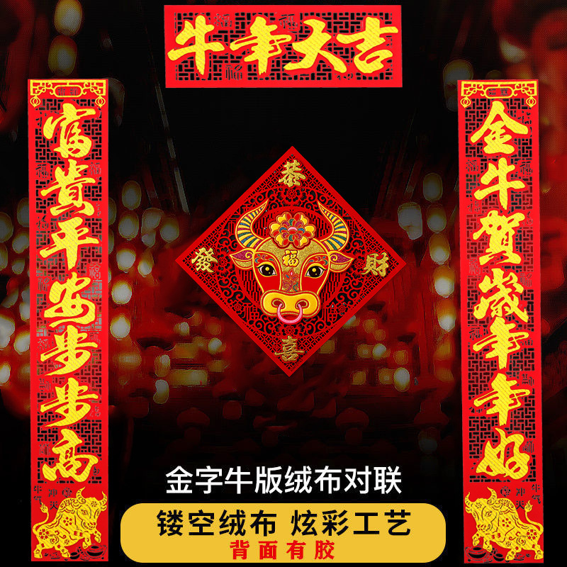 新年过年搬家牛年春节2021绒布带胶植绒新居楼房春联乔迁装饰对联