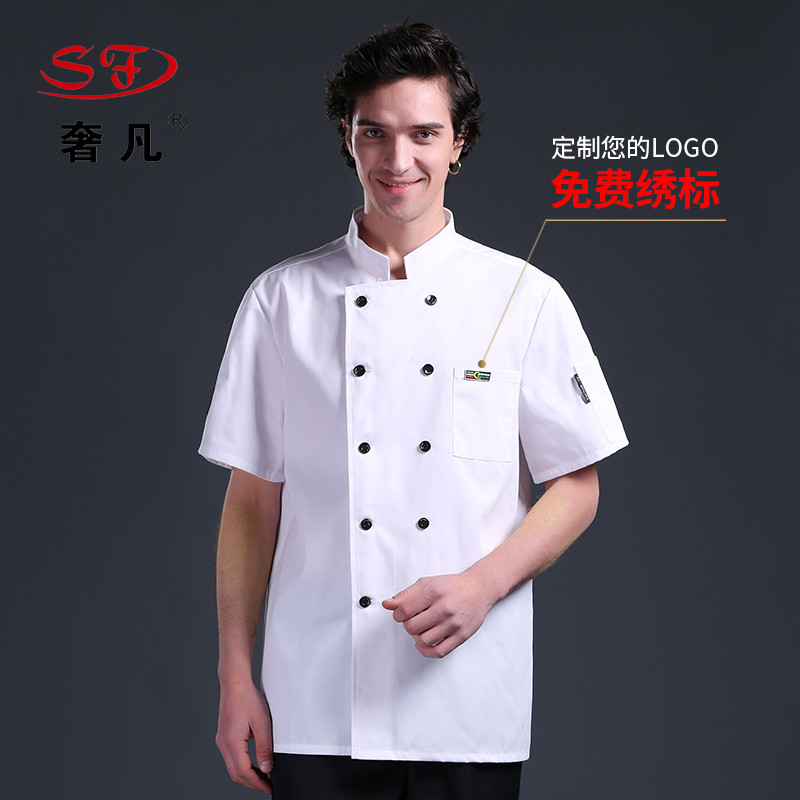 奢凡夏季酒店后厨厨师服纽扣短袖刺绣双排皮标工作服中式西式订做