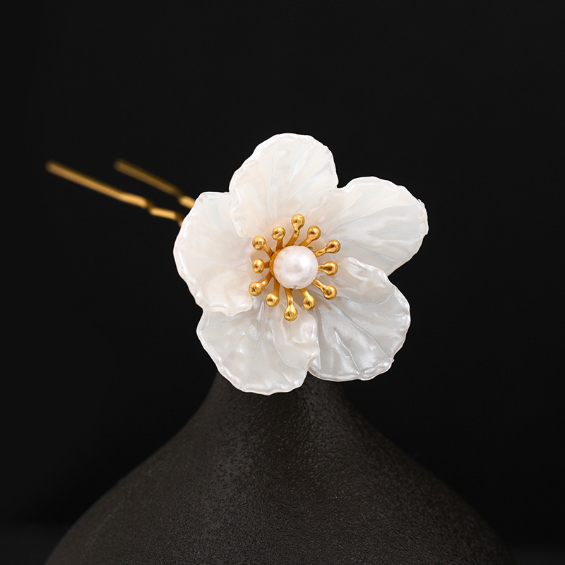 原创新款古风头饰简约汉服发饰白茶花古装发簪古风汉服配饰批发女