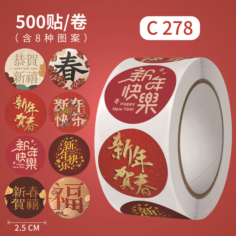 中国新年贴纸红色圆春节标签福字红色信封用于新年节派对礼品装饰
